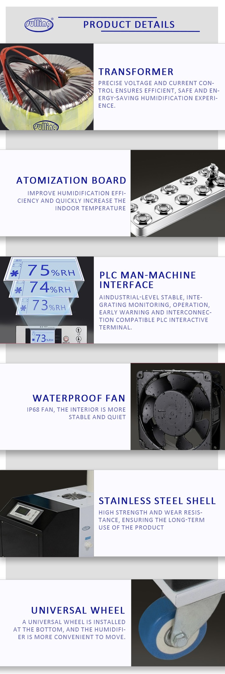 • 4. Fully intelligent control, humidity adjustable by 1%.